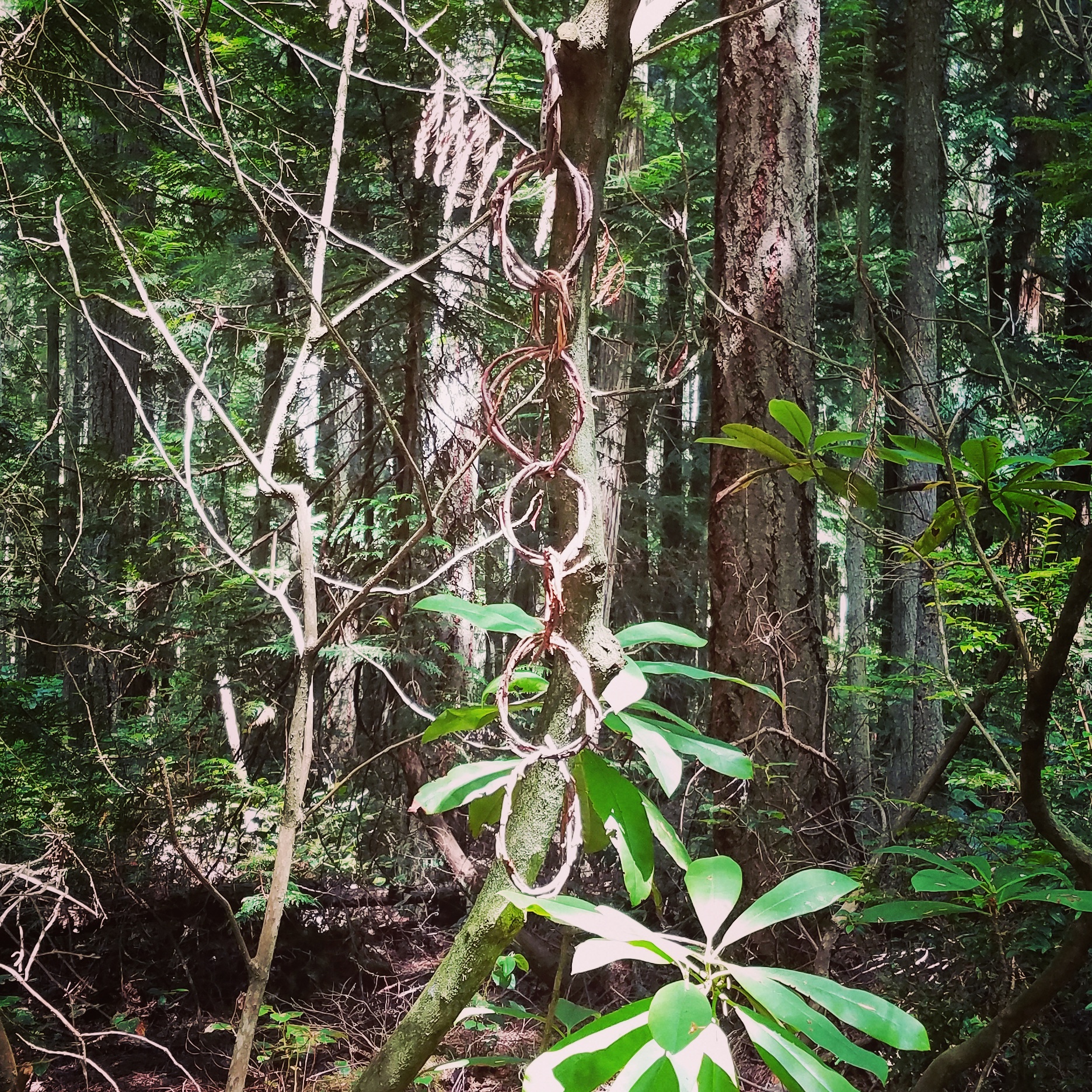 I don’t know how to sit still when I’m feeling stirred up. I harnessed the pooch up and set off down the path. Amongst the evergreen trees of the Pacific Northwest, these are the forests of horror movies. A hundred films roll thru my mind as we stroll on. I had forgotten she has an inquisitive nose and found myself stopping every five or so paces. It is quiet for an afternoon, and we are only yards off the road, but she keeps stopping and looking behind us. I hear no birds, just the crunch of my own footfalls, and the occassional snap of a branch. Much too large for the wind. Always behind me. And the trees with their moss and greenery too thick to see any distance around me. Just the path ahead, and the path behind. I see angry ghosts, restless and alone, waiting for one to stumble thru. They’re always angry, no ghost ever reached out to give you a hug. I try to quicken my pace, but the dog keeps halting, yanking me back, to sniff, to look up, to look back. Would she defend me, if an angry spirit stepped into the path ahead? We keep on, at our lurching pace, I wonder what it is she smells. The many animals that have traveled here, the people, could she smell if someone was murdered here? Would she tell me if she did? I spot a long discarded sock, half hidden in bush. If I peeked behind that bush, would I find a dead body? How long would it take someone to find a body out here, in all the bushes and behind all the trees? I hear another branch snap and executively decide to walk faster, giving a hard yank on the lead each time I feel it yank me back. How far does this trail go? Why can’t I hear any sound except my own footsteps, my breath coming out in pants, those damned snapping branches..