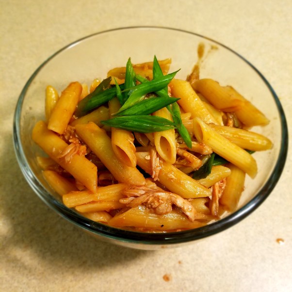 Shredded Dark Chicken with Wilted Scallion and Plum Sauce Pasta. Pasta Marco Polo