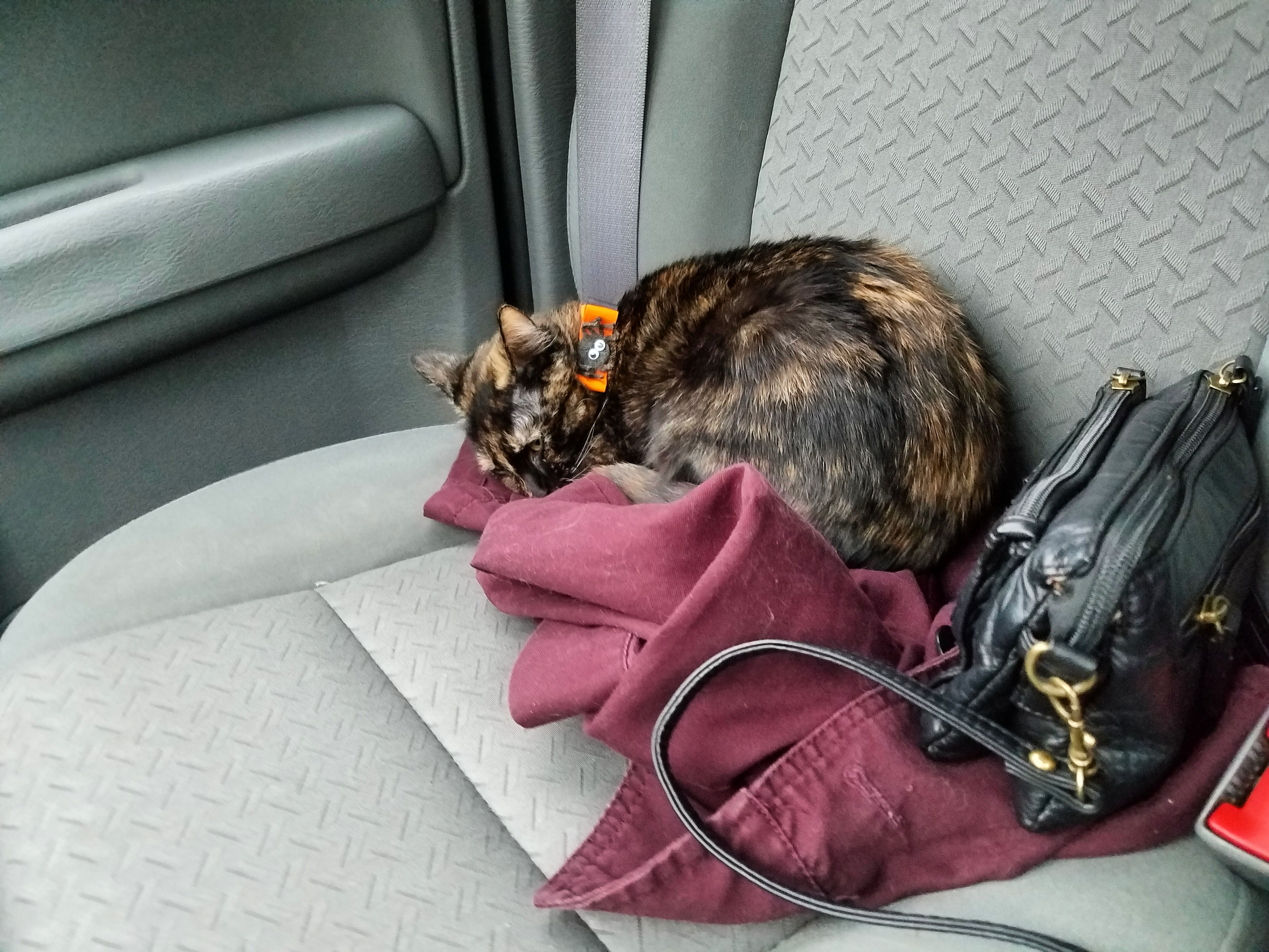 One cat suddenly sits up and begins yowling and pacing back and forth, as though awoken from a nap and not quite sure where he is. “I know buddy,” she says, rubbing his head til he settles back down, this time on her other leg, “you and me both…” He lets out a sigh. Aaron continues his story. GPS chimes in that her signal has been lost. “You never even tried,” she says, begrudgingly. But then shrugs, soon they would be home..