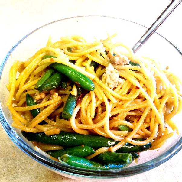 Noodles with Ground Pork, Green Beans, and Crushed Peanuts, in a Black Soy, Chili Peanut sauce Share this: Click to share on X (Opens in new window) X Click to share on Facebook (Opens in new window) Facebook Like Loading...