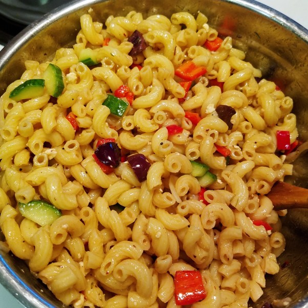 It was kind of an endeavor cuz I had too much Pasta Salad, then I had too much Tzatziki Sauce, then I had too much Pita… but I eventually managed. 😁