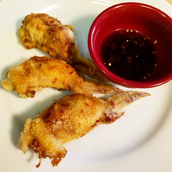 Boned out chicken wings, stuffed with Pork, Shrimp, and Vermicelli. Steamed, then fried.