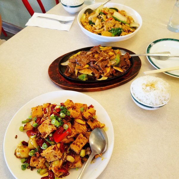 Hong Kong (restaurant) – Szechuan Fried Tofu, Sizzling Black Pepper Beef, and Crispy Noodles with Chicken