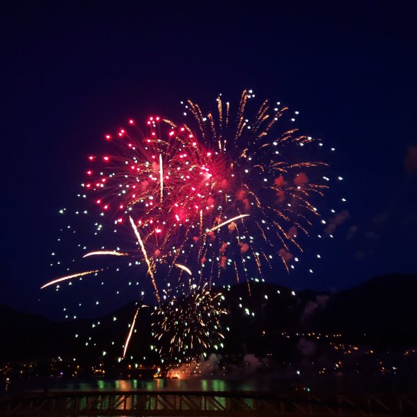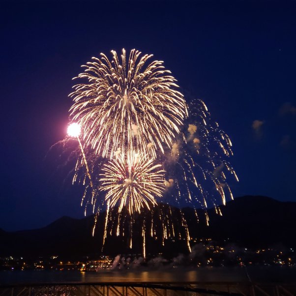 Tonight, the explosions are loud. They are numerous. Sky explosion after sky explosion. People cheer and clap. The sounds carry and bounce off the mountains.