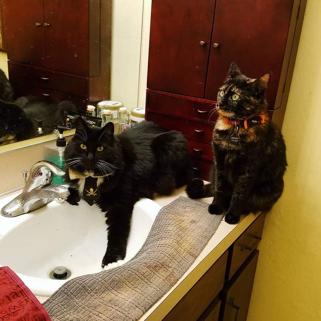 Cat 1: I need water. Now. (Jumps on to tiny counter)