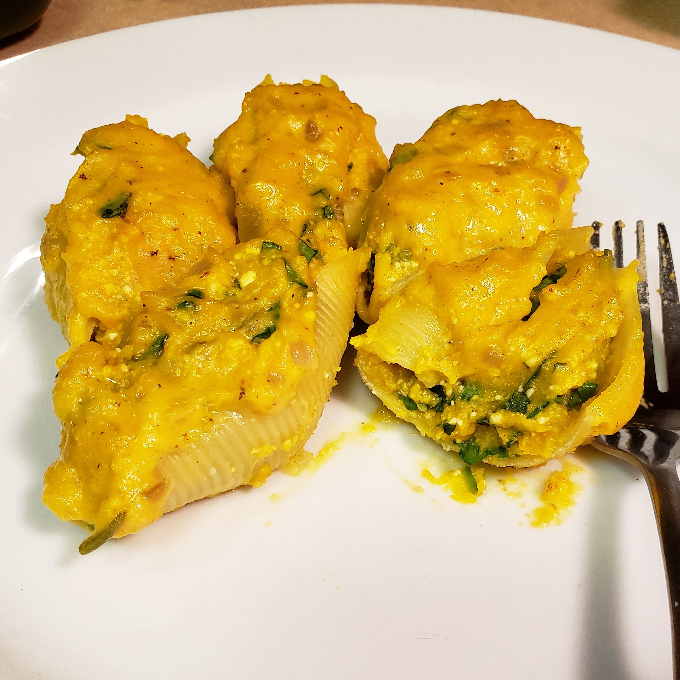 Butternut Squash, Ricotta, Spinach stuffed Shells, with too thick Brown Butter, Sage, Squash Sauce