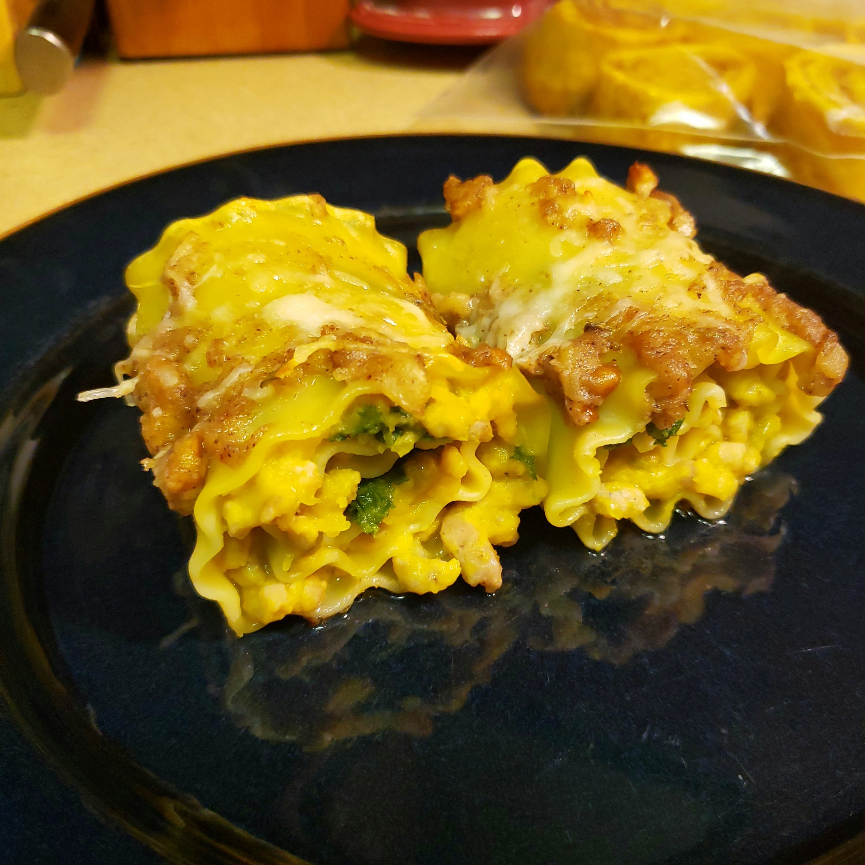 Sausage and Kale, with Squash Puree and Parmesan roll ups, with weird Apple, Brown Butter, Sage, Walnut Sauce