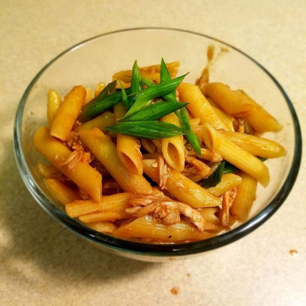 Penne with Dark Meat Chicken and Scallion, in Plum Sauce.
