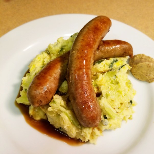 The next day, I finished the Colcannon off with a couple Beer Braised Bangers and some Stoneground Mustard.