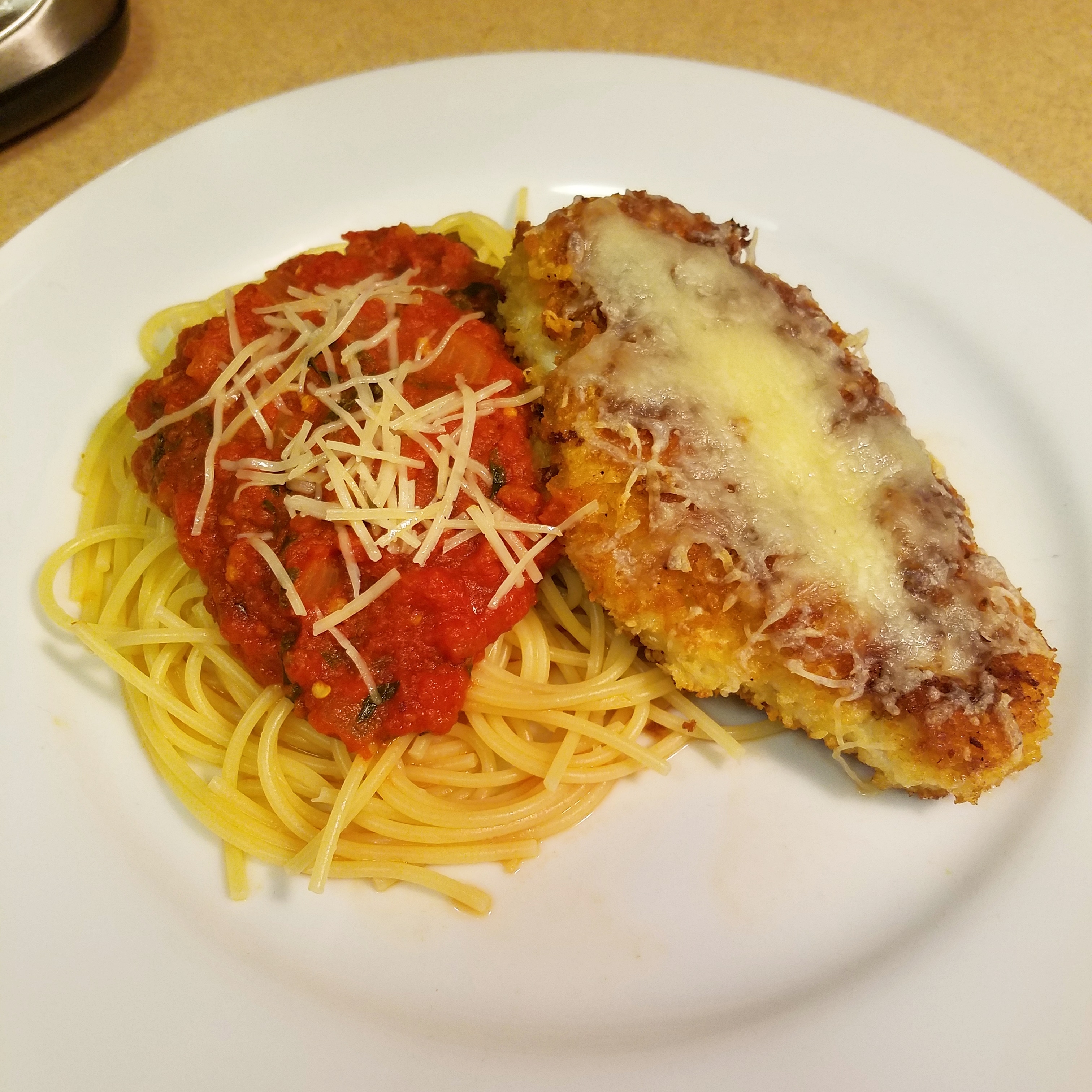 Night 1: Chicken Parmigiana with homemade Arribiata Sauce..
