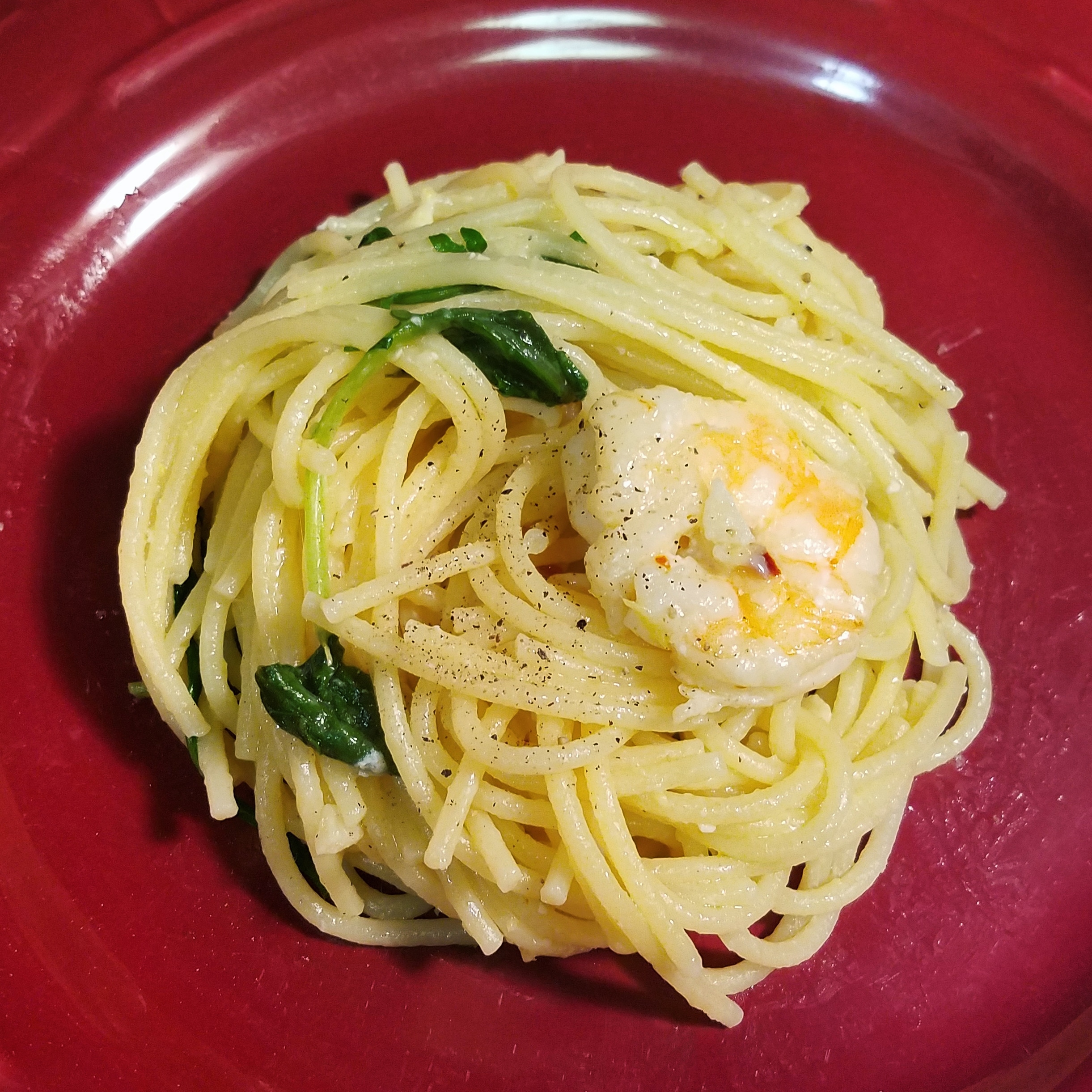 Night 4: Shrimp and Arugula Pasta with Lemon, Garlic, and Parm. And Thyme and Red Pep Flakes..