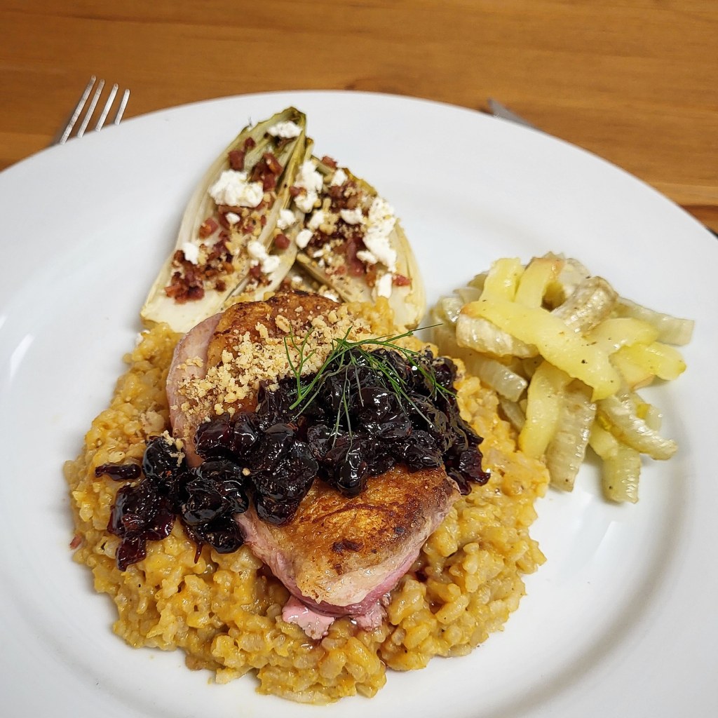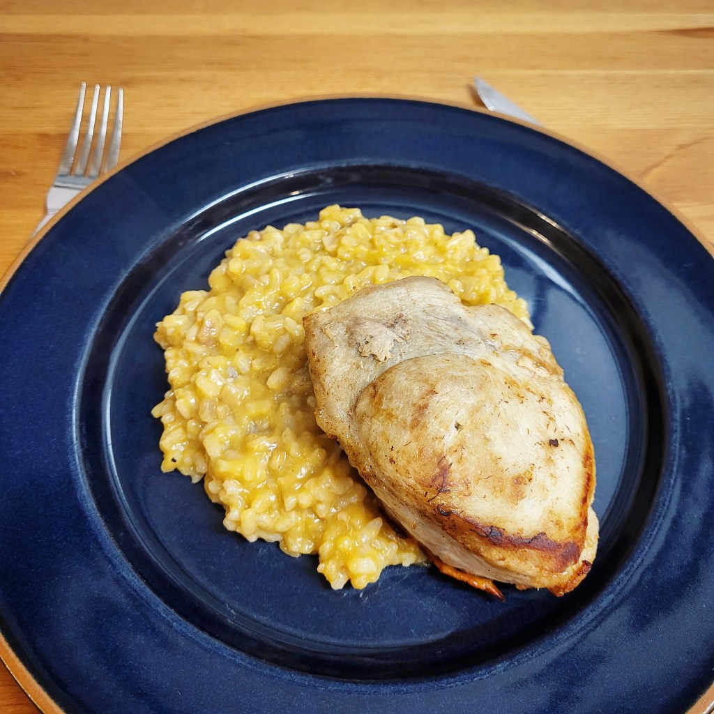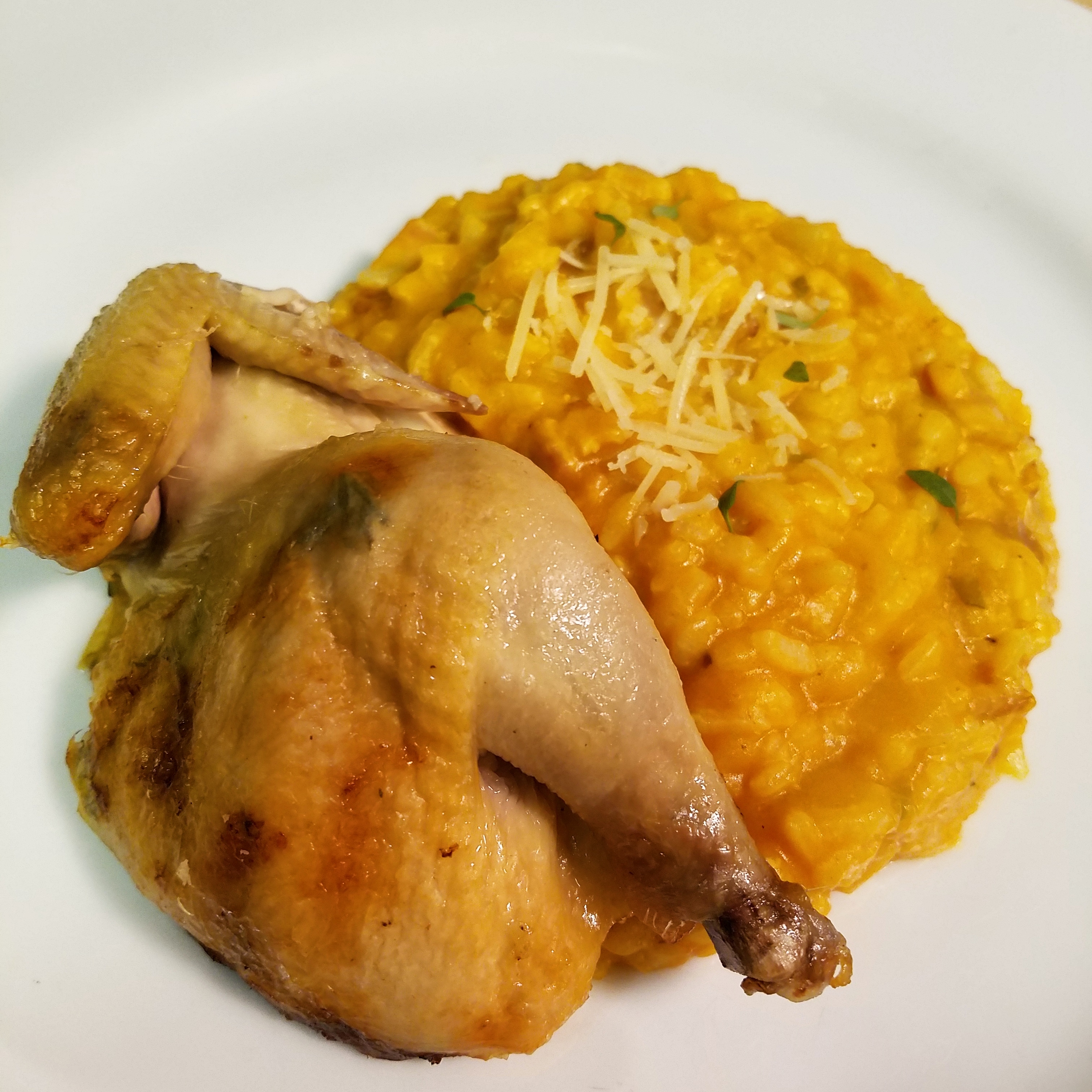 Night 6: Pumpkin Risotto with Bacon, and the other half of the Cornish Hen..