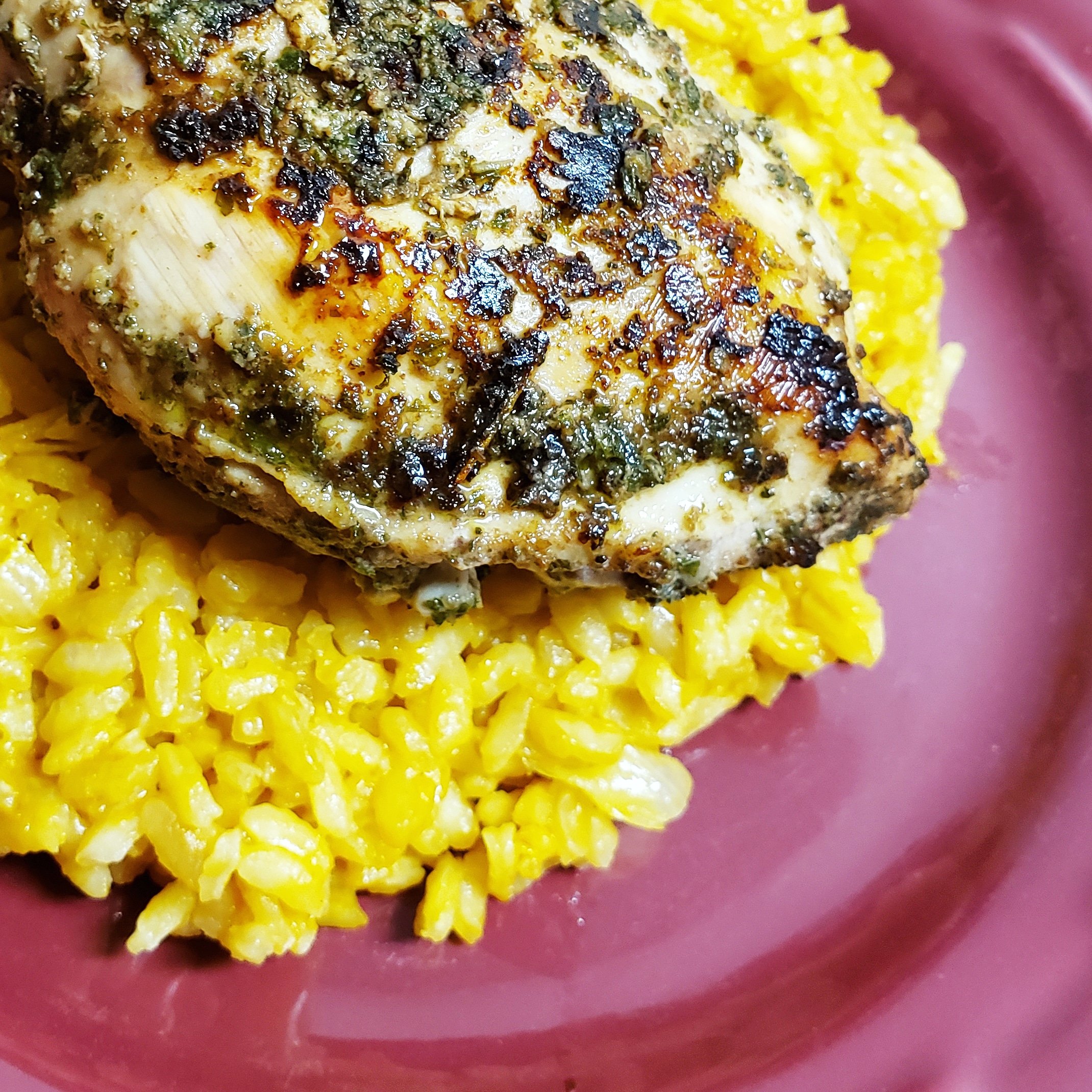 Leftover Pumpkin Risotto, and Sage Pesto Chicken